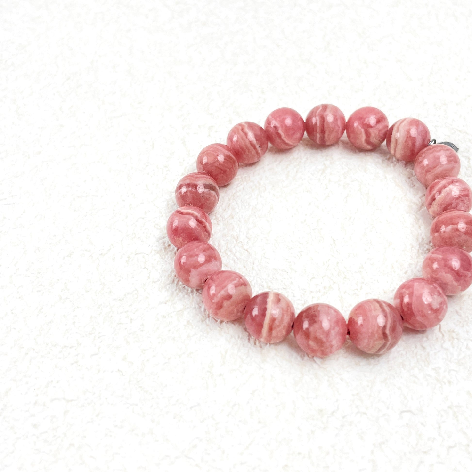 This 10 mm Rhodochrosite Bracelet features beautifully polished natural beads, hand-strung on durable elastic for easy, everyday wear. Each stone’s soft rosy hues evoke warmth, compassion, and loving energy, making it both an elegant accessory and a heartfelt talisman.