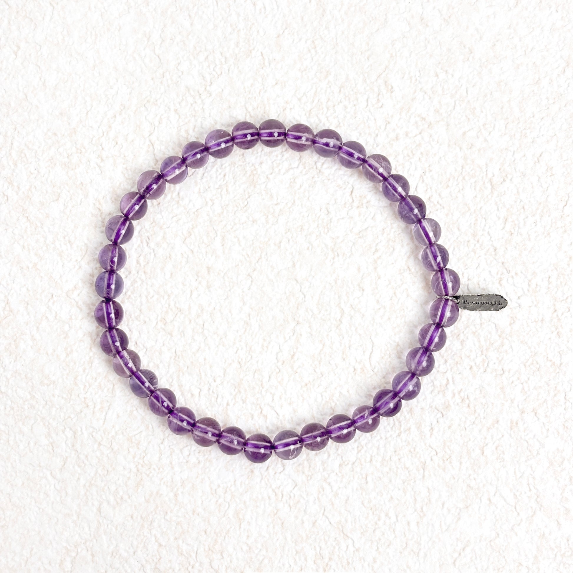 The Calm & Clarity Bracelet features delicate 5 mm beads of natural Amethyst, carefully strung on elastic cord for comfort and easy wear. Its slim and elegant design makes it perfect for everyday styling, while its subtle purple hues evoke tranquility and grace.
