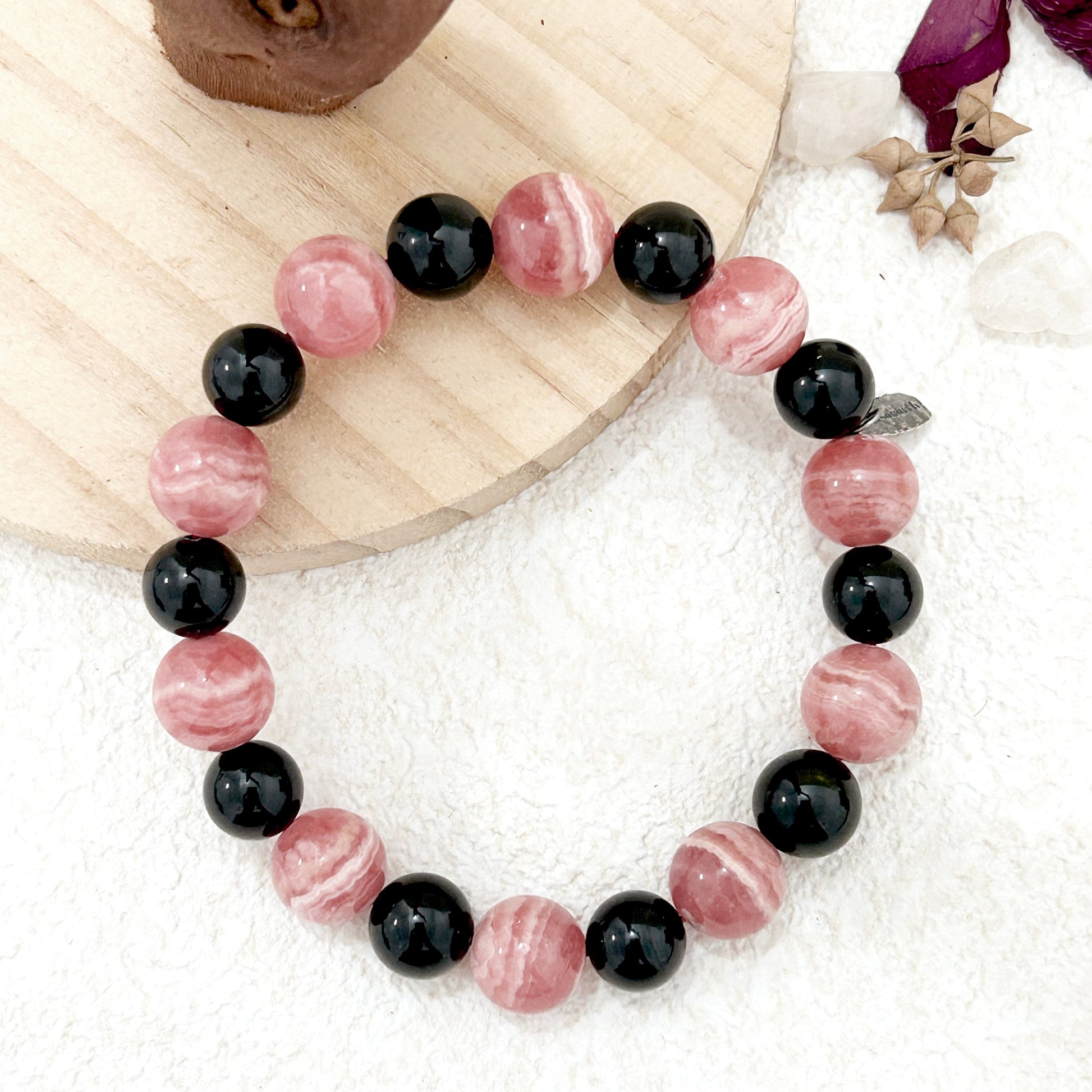- Stone size: Rhodochrosite 9mm, Black Tourmaline 8mm