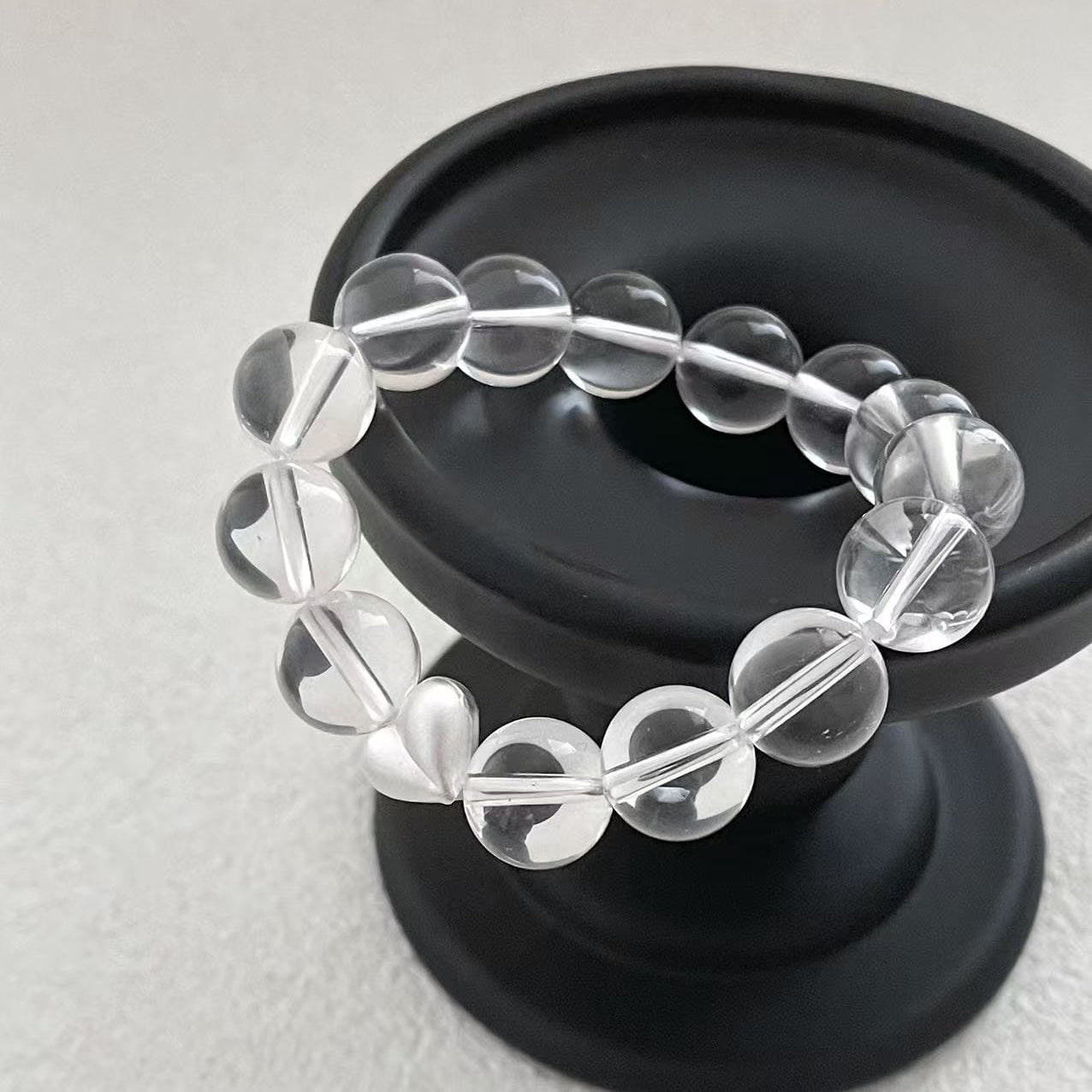 The combination of Clear Quartz and a heart-shaped silver charm encourages honesty, softness, and emotional openness. It helps dissolve internal tension and clarifies what your heart truly feels and desires.