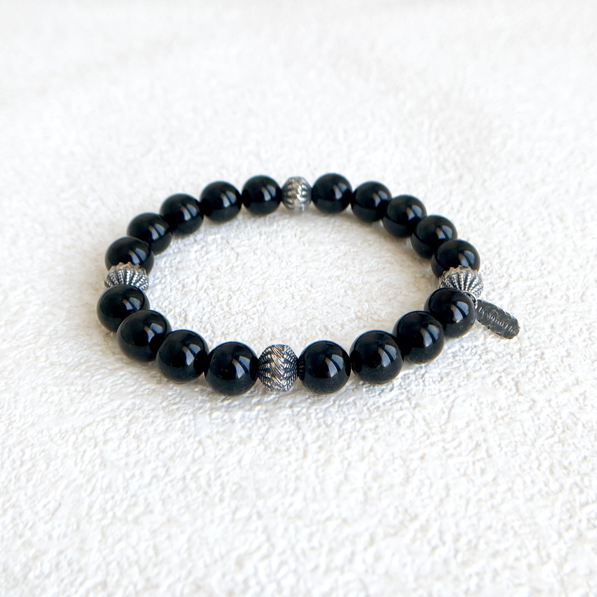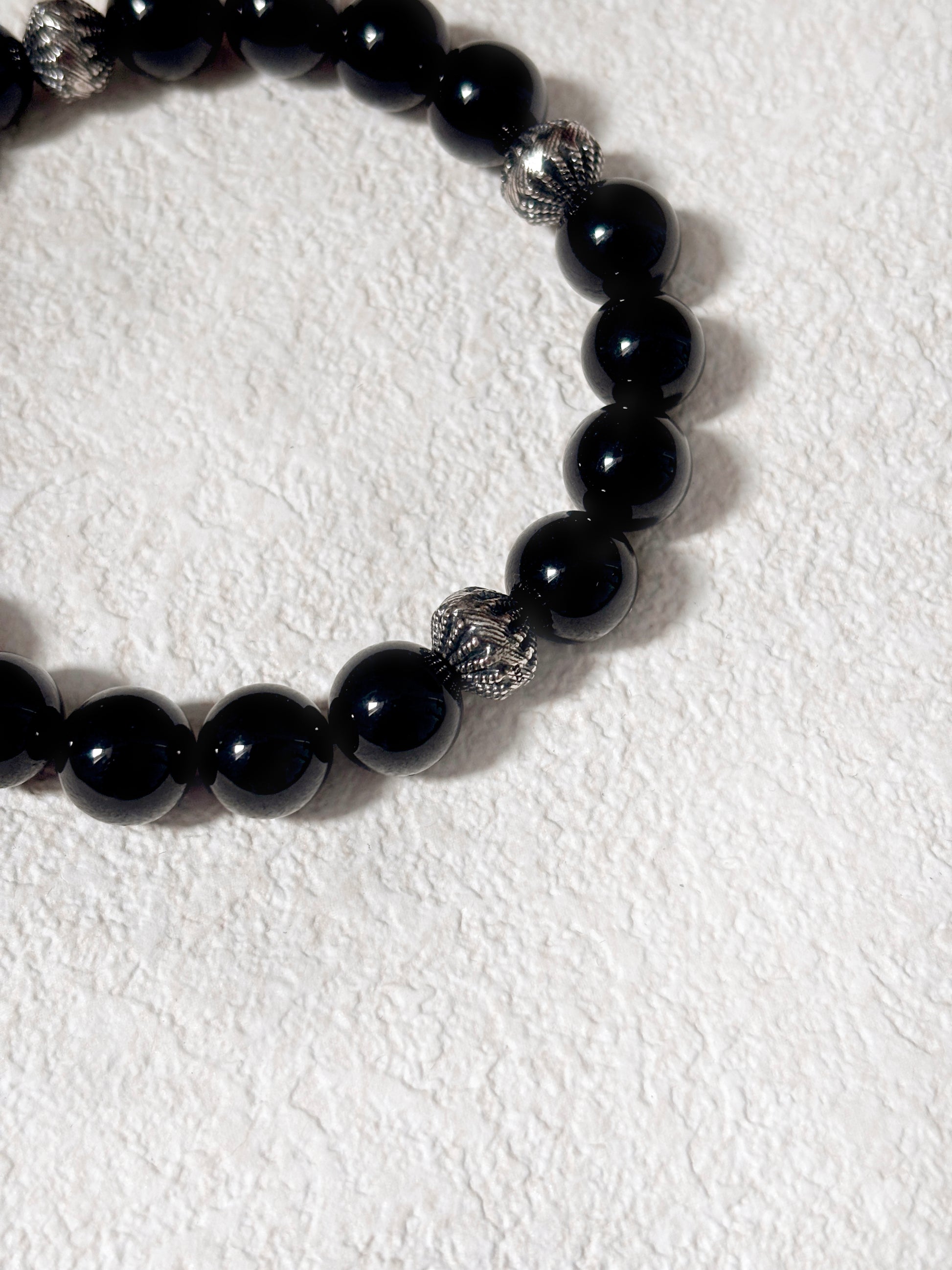 The Inkshade Bracelet showcases polished black tourmaline beads in a sleek, all-black design, strung on elastic for comfortable, everyday wear. Its minimalist elegance radiates a sense of stability and intention, offering both aesthetic beauty and energetic support.