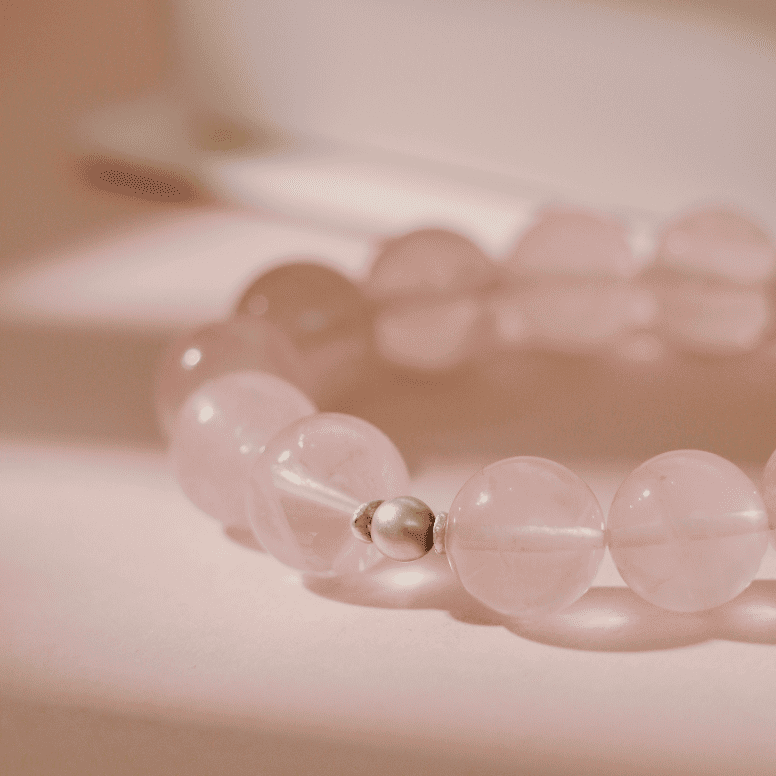The combination of rose quartz and sterling silver forms a balanced system: soft materiality guided by a fixed constant. Together, they support composure and continuity throughout changing daily rhythms.