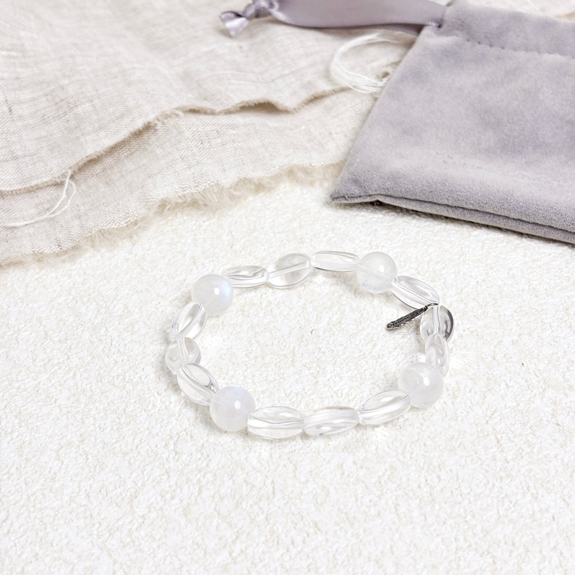 Moon Veil - White Moonstone & Clear Quartz Bracelet