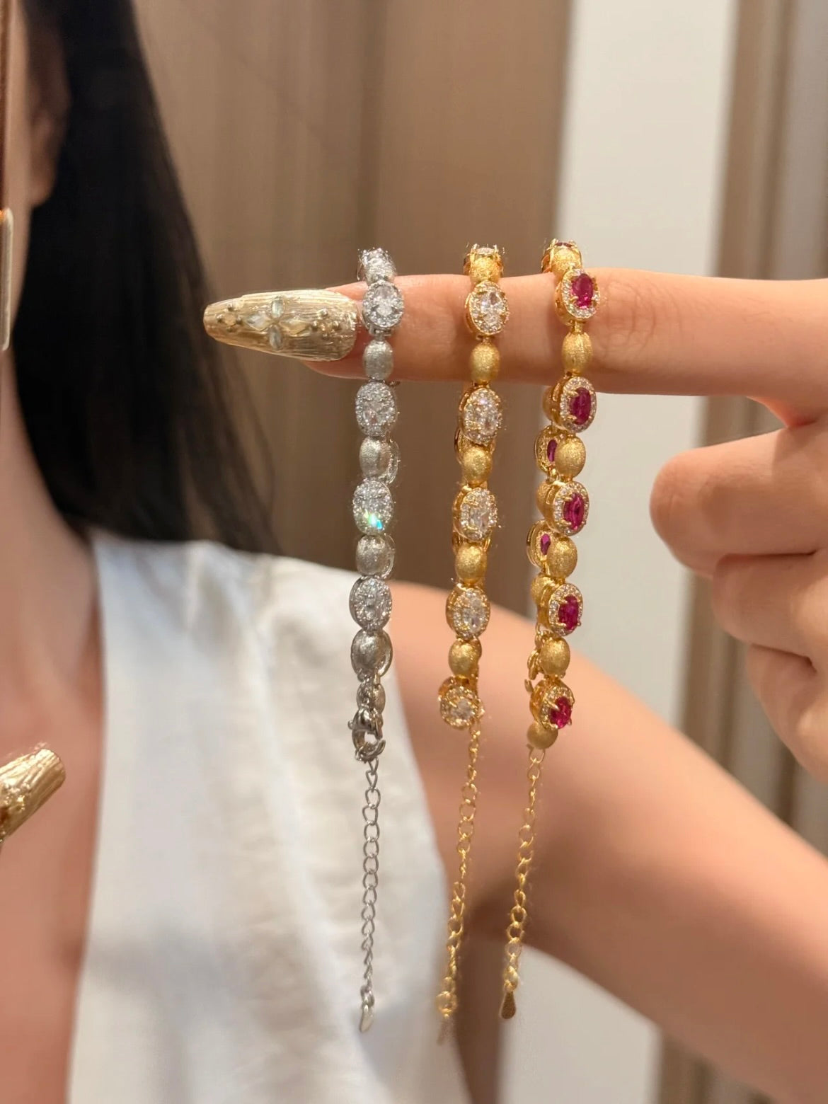 Crafted with precision, each stone captures light from every angle, adding a subtle yet captivating sparkle to your wrist. The 14cm chain with a 5cm adjustable extension ensures a comfortable fit for any style — whether worn solo or layered with your favorite pieces.