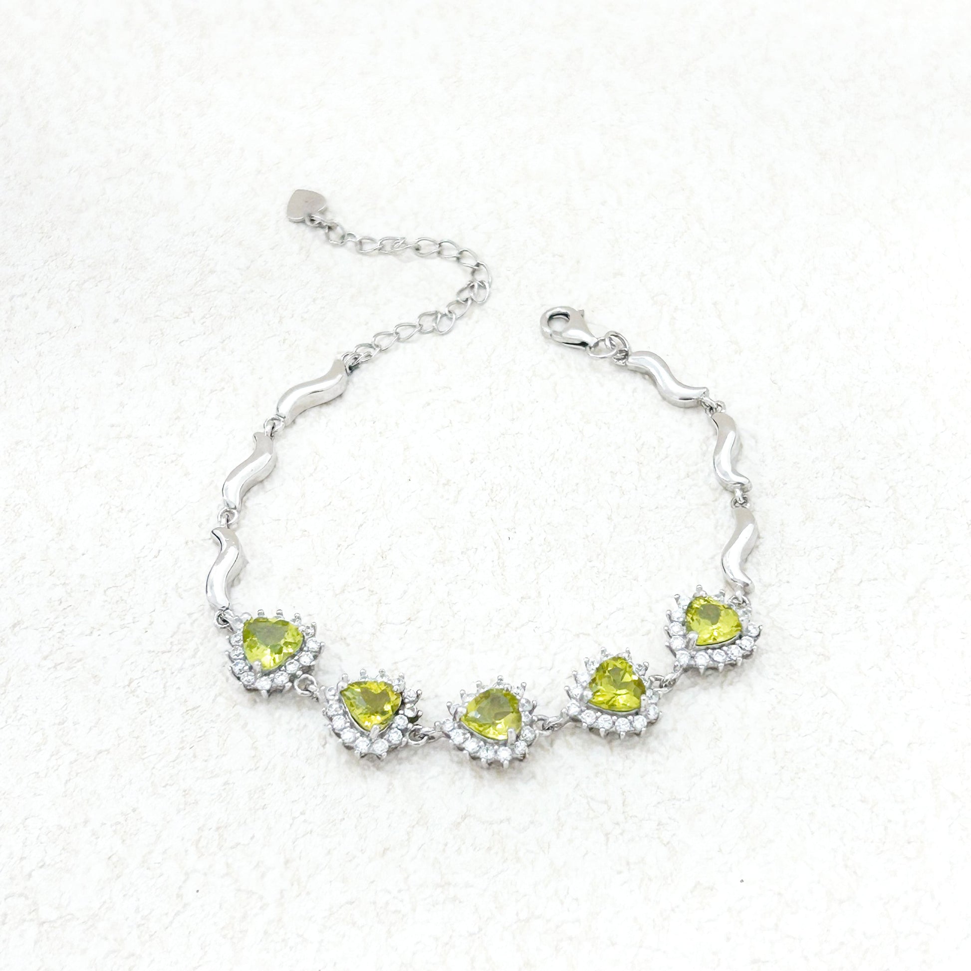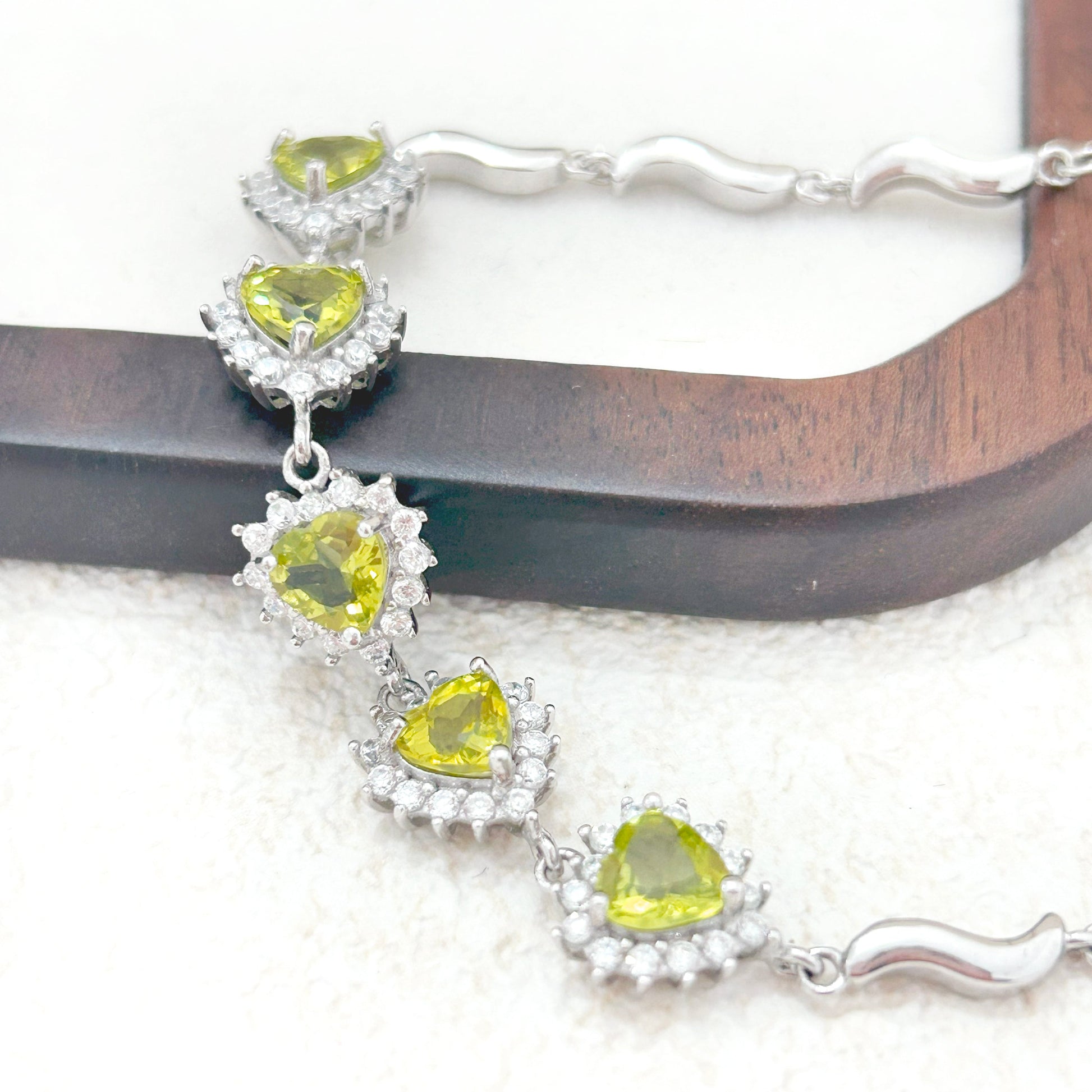 The Whisper of Olive Bracelet features vibrant peridot (olive-green) beads.